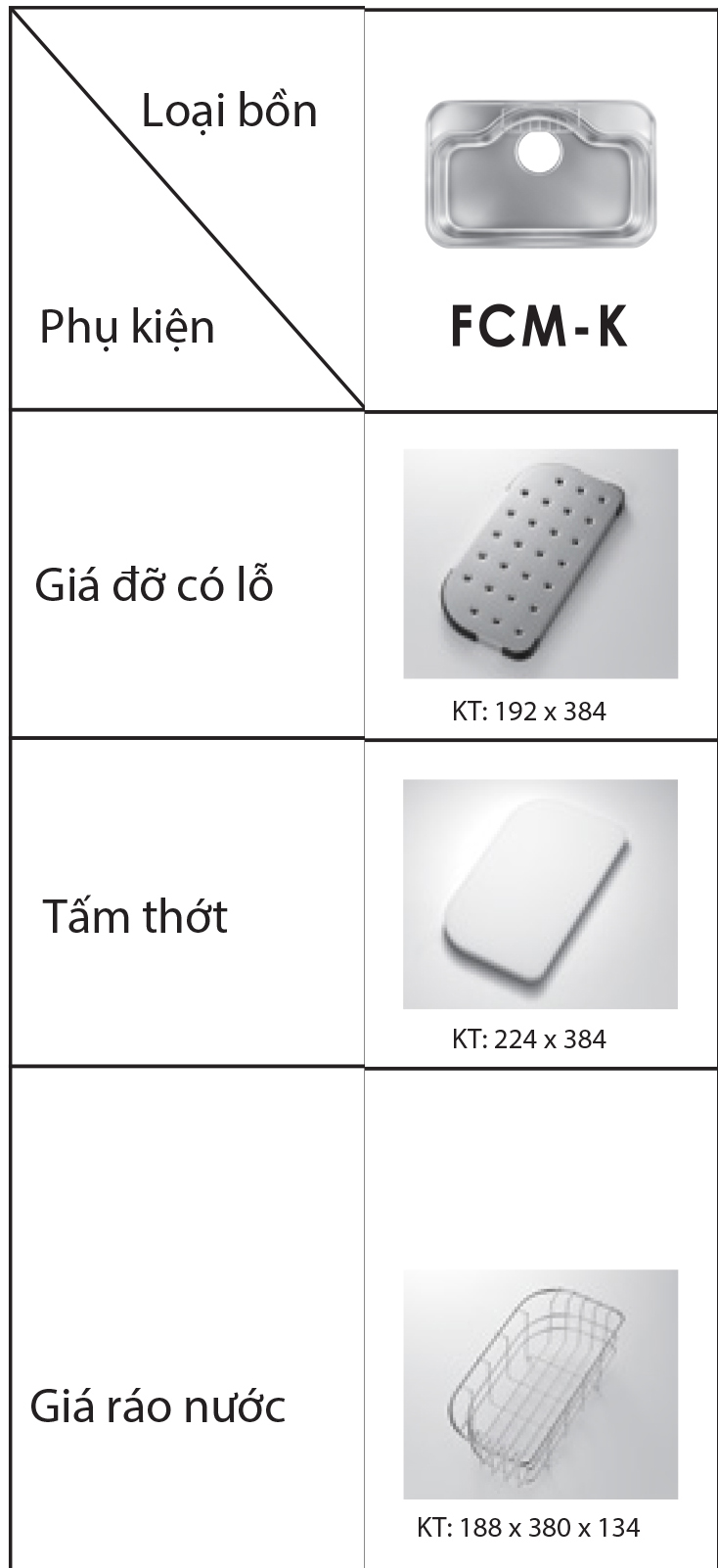 Thông số kỹ thuật Chậu rửa bát 1 hố Nhật Bản SHIGERU FCM-K FS: