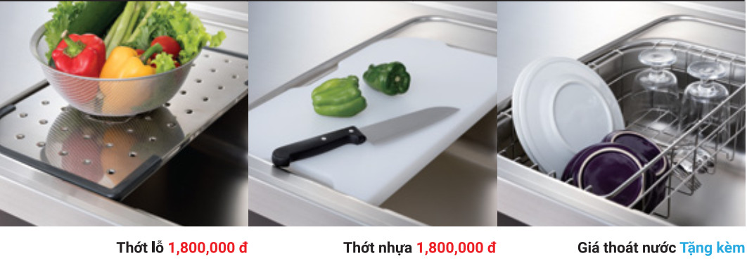 Lưu ý: Đơn giá trên đã bao gồm 1 bộ xiphong, 1 khay inox để xà phòng và khay inox úp chén đa năng.