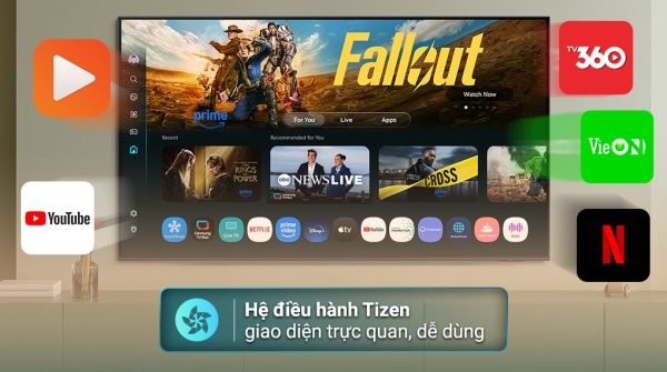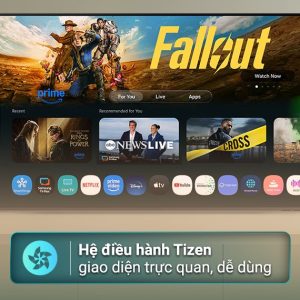 Sản phẩm trang bị hệ điều hành Tizen với giao diện thân thiện, dễ sử dụng, cho phép người dùng nhanh chóng truy cập ứng dụng hoặc chuyển đổi giữa các nội dung. Kho ứng dụng phong phú đáp ứng đầy đủ nhu cầu giải trí: YouTube, Netflix, Disney+, VieON, FPT Play, TV 360,…