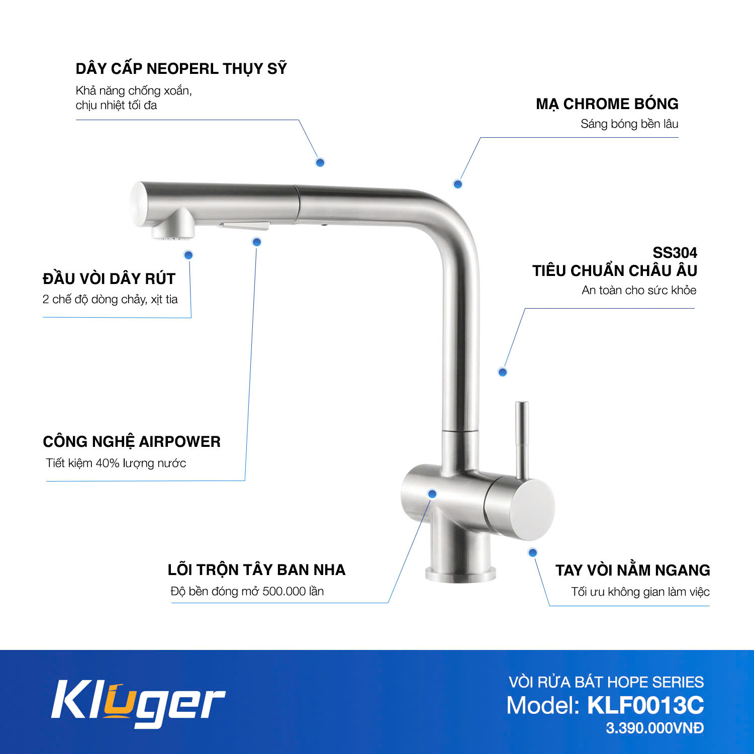 Vòi Rửa Bát Chén Kluger KLF0013C – Dòng HOPE Series